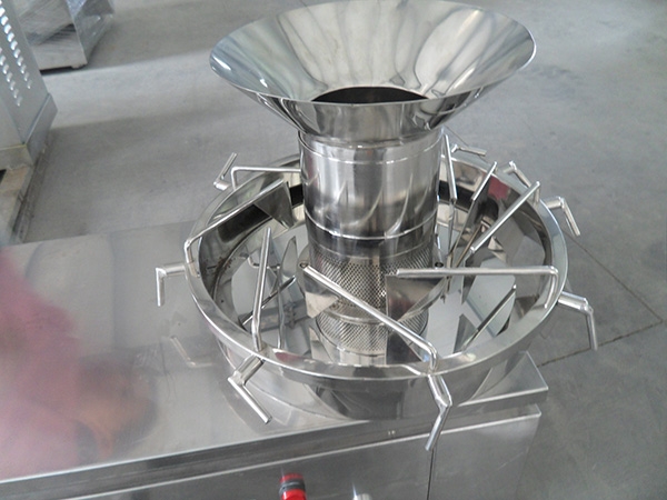 1、本機(jī)上部為制粒部分,它主要有十字碾刀、篩筒、防塵罩等組成。各種部件全部采用不銹鋼制成。