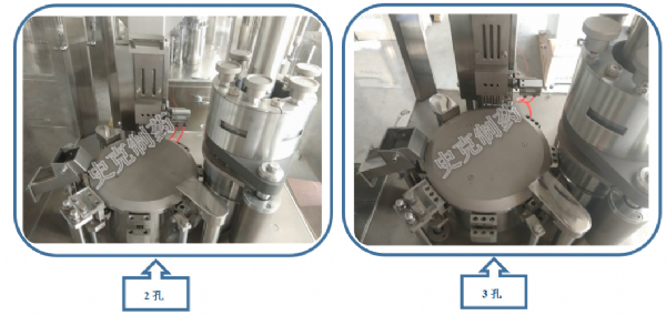 5、配備粉體物料充填機(jī)構(gòu),使粉體物料經(jīng)過(guò)膠囊填充料倉(cāng)裝置連續(xù)均勻強(qiáng)制下料至膠囊填充區(qū);