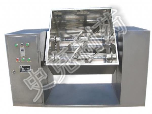 槽型混合機(jī)通過(guò)機(jī)械傳動(dòng),使S式攪拌漿旋轉(zhuǎn),推動(dòng)物料往復(fù)翻動(dòng),均勻混合,槽型混合機(jī)操作時(shí)采用電氣控制,可設(shè)定混合時(shí)間,到時(shí)自動(dòng)停機(jī),從而提高每批物料的混合質(zhì)量。